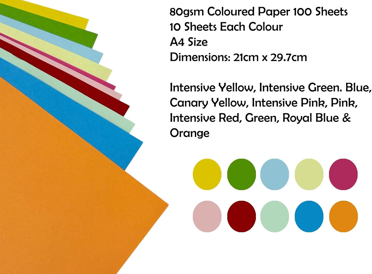 10 VIBRANT COLOURS INCLUDED: Intensive Yellow, Orange, Intensive Green, Blue, Canary, Intensive Pink, Pink, Intensive Red, Green, and Royal Blue for bright, eye catching origami and craft designs.