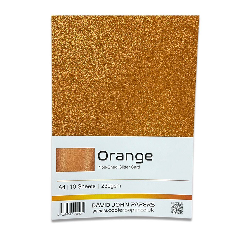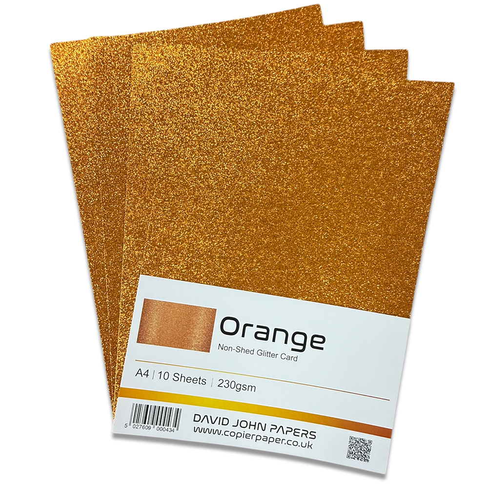 DJP A4 Glitter Card Sheets. 10 Sheets 230gsm Non Shed Glitter Cardstock (Orange)