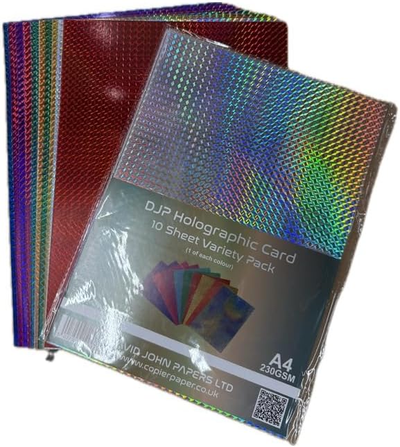 DJP Holographic Metallic Card Pack with 10 vibrant colours. Perfect for card making, scrapbooking, crafts & decorations. Add sparkle to every project